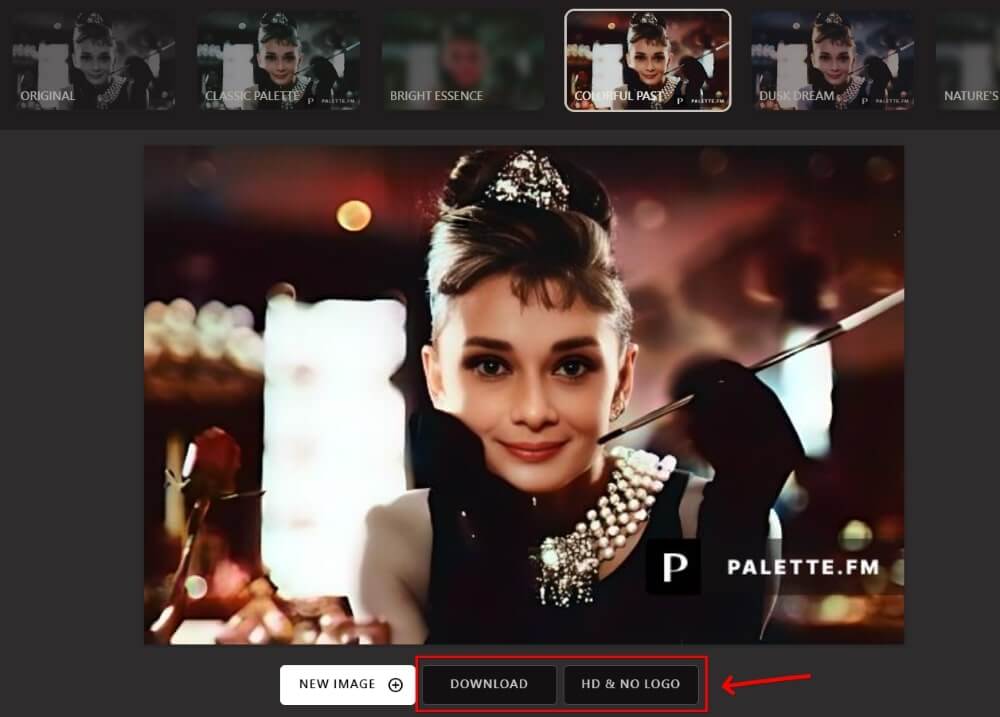 上傳照片後,Palette.fm 提供多個配色方案,上方選擇配色後,點撃「下載」,即可下載圖片。