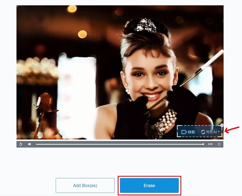 把影片中的長方形拉到需要移除水印位置,下方點撃「Erase」。