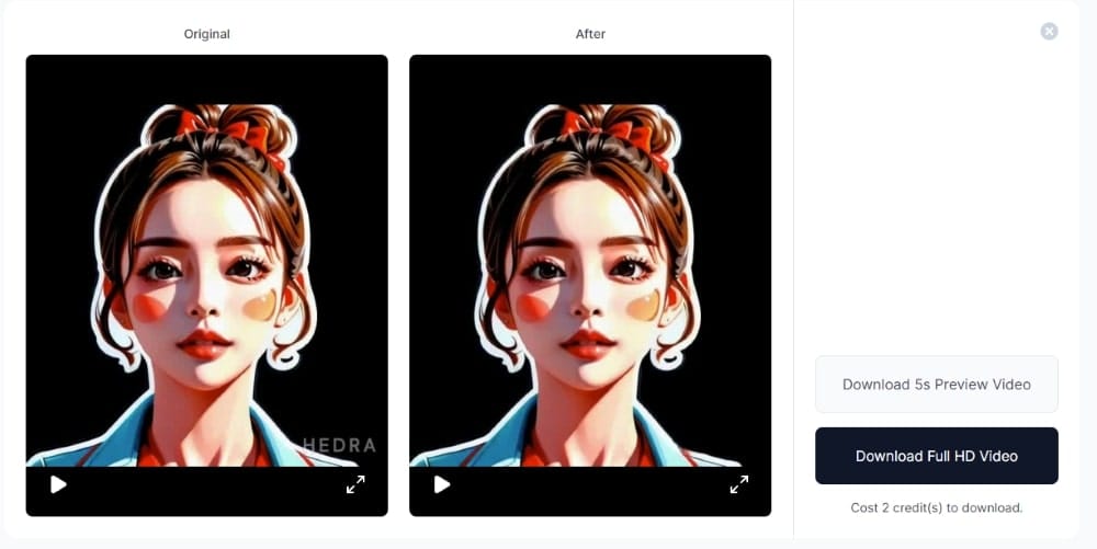 Vmake AI 會自動去除水印,右側點撃「Download」 即可下載移除水印後的影片。Vmake AI 免費用戶提供 5 Credits,下載 HD 版本消耗 2 Credits,Preview 版本則不扣 Credit。
