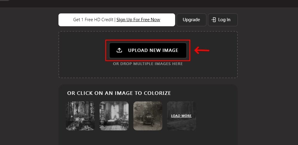 進入 PhotoRestore 網站,點撃「上傳圖片」,Photo Restore 自動修復照片。