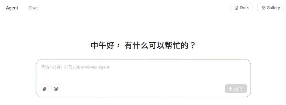 在 MiniMax Agent 首頁,輸入任務,點擊「運行」,MiniMax Agent 會自主執行任務。