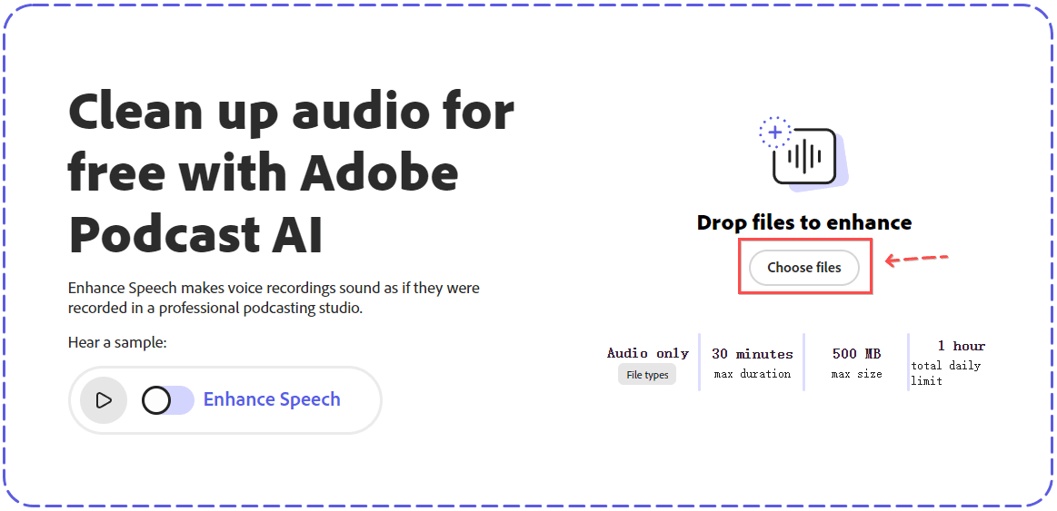 3. 點撃 “Choose files” 上傳音頻檔案。