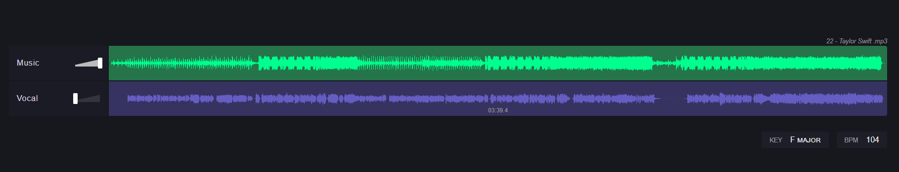 2. 上傳需時 1-2 分鐘,完成後,會見到兩條音軌,上方綠色音軌是音樂,下方紫色音軌是人聲。