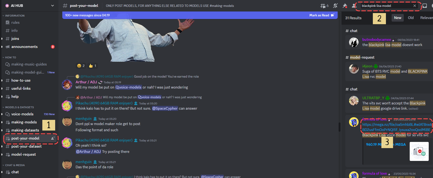 到 AI Hub Discord Channel 尋找模型。