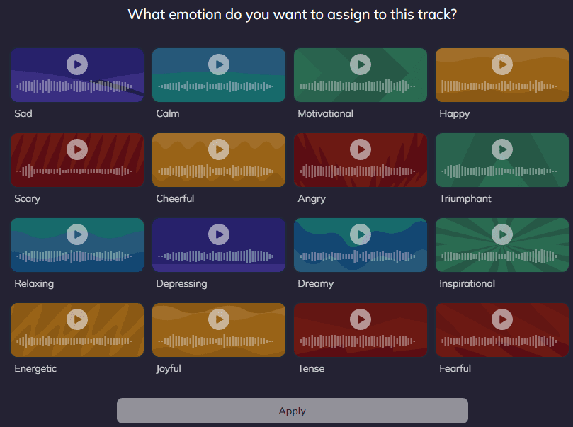 選擇音樂情緒,決定後點選 “Apply”。