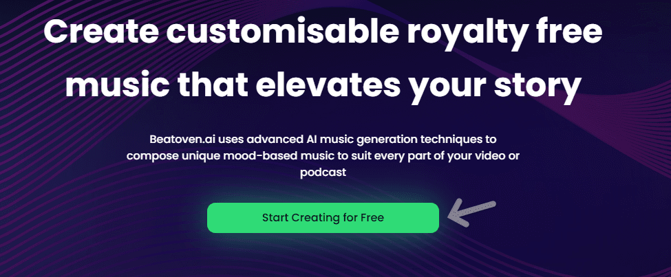 進入 Beatoven 網站,點選 “Start Creating for Free”。