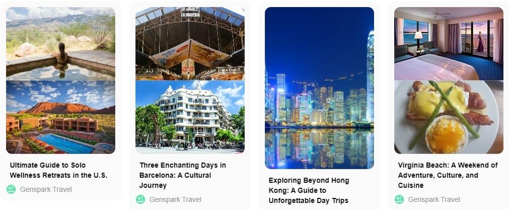 除了搜索引擎,Genspark 提供三大主題 Genspark Travel、Genspark Products 和 Genspark Images,助用戶節省時間規劃旅行和研究產品等。