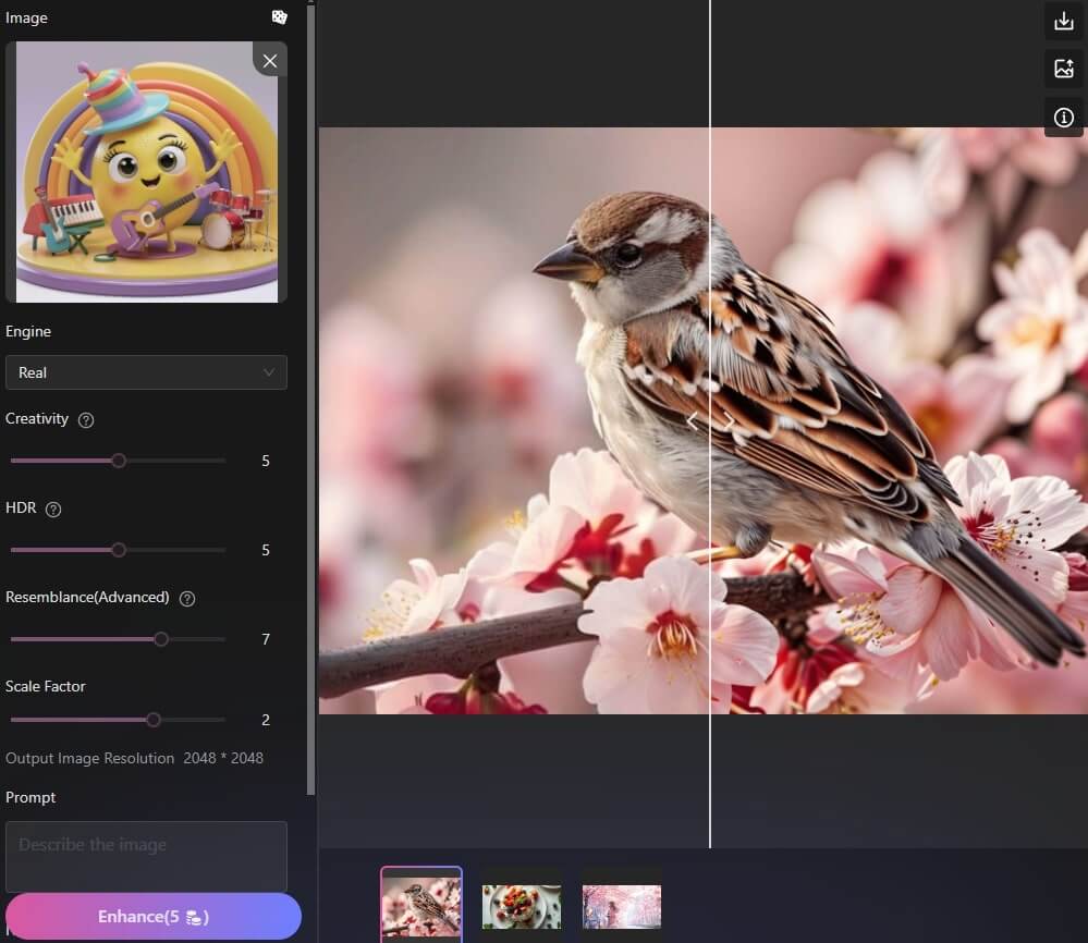 上傳圖片,修改參數,點撃「Enhance」,即可下載已提升影像細節和質量的圖片。
