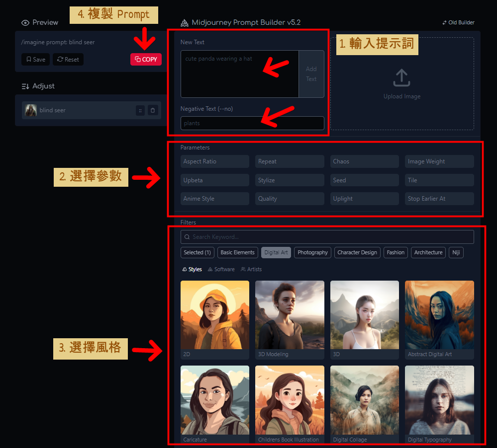 如何使用 Midjourney Prompt Builder 提示詞生成器?