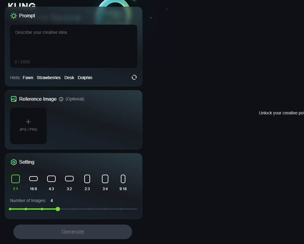 輸入提示詞 (Prompt),有參考圖片可以上傳參考圖,選擇圖片尺寸及生成多少張圖片後,點撃「Generate」,即可生成圖片。