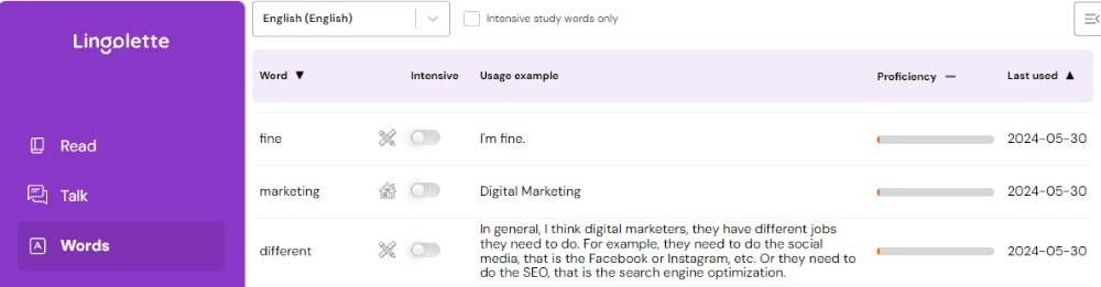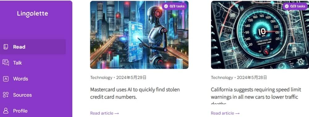 Lingolette AI 可以學習多種語言,包括英文、法文、日文、西班牙語等。此外,Lingolette 還提供每日文章及每天目標,增加學習資源的多樣性及趣味性。