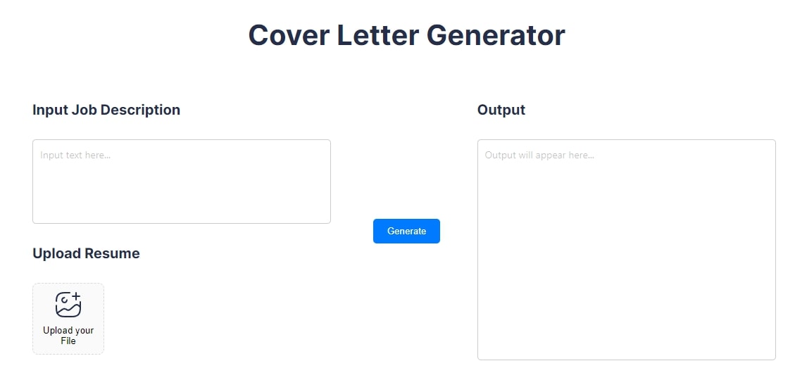 在上方選擇「Cover Letter Generator」,填上職位描述及上傳履歷,點撃「Generate」,即可生成求職信。