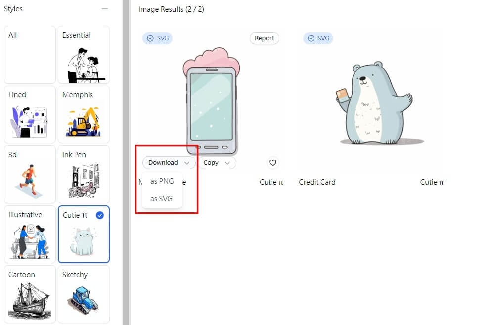 2. 選擇喜歡的插圖,點撃「Download」即可下載 PNG 或 SVG 格式的插圖。要下載,需要 Google 帳戶登入。