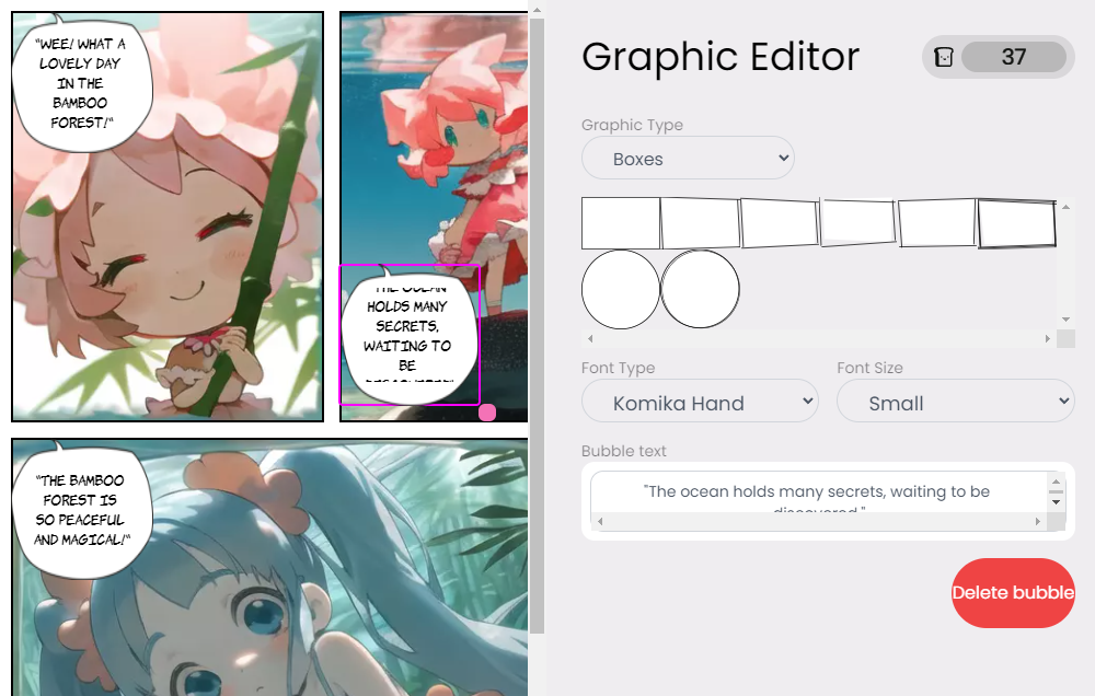 7. 點撃氣泡內容,可以在 “Graphic Editor” 自訂氣泡形狀、文字、字體、字號等。