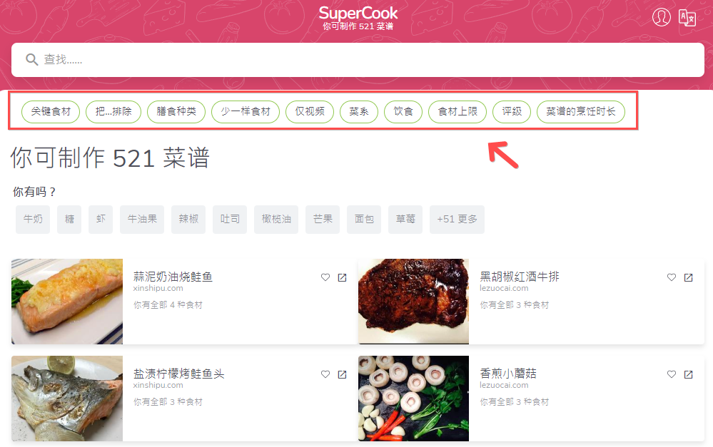 SuperCook 是一款免費的線上 AI 食譜生成器,可以根據家裡已有的食材做飯,減少食物浪費。