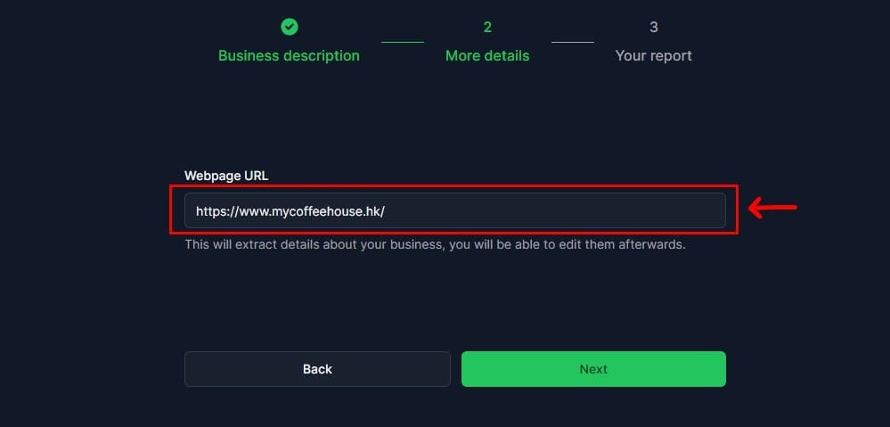 3. 如有企業網站,輸入網站連結後,點撃「Next」。