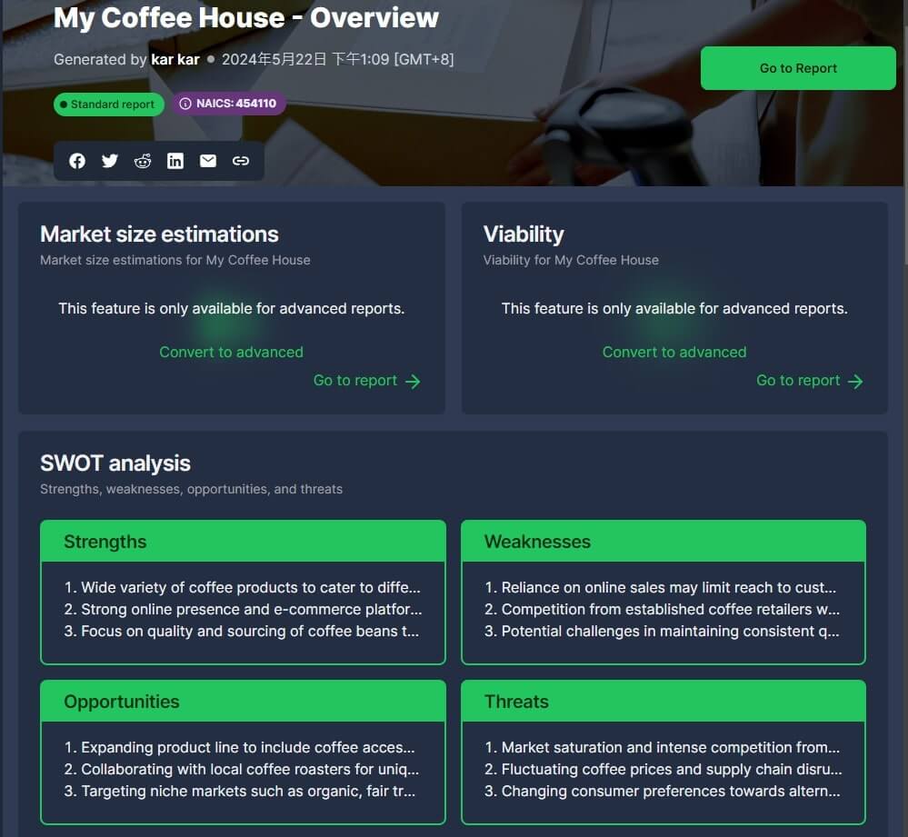 完成後,會獲得商業分析標準報告。