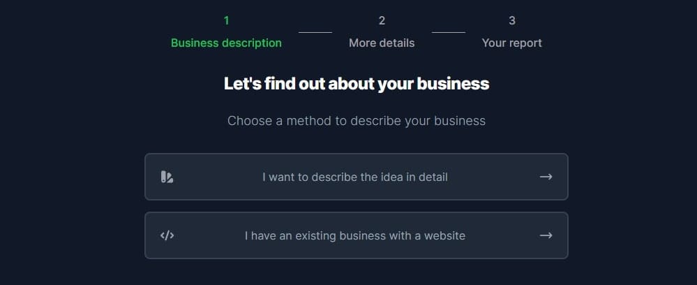 2. 可輸入商業想法或企業網站。點撃「I want to describe the idea in detail」即可輸入想法。