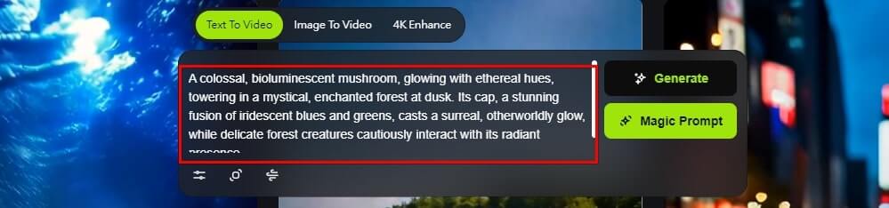 如果想不到提示詞,輸入簡單文字,點撃「Magic Prompt」,Viva AI 會自動生成提示詞,點撃「Generate」,即可生成影片。