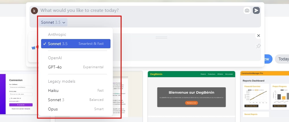 1. 在 Websim AI 頁面上方輸入框位置選擇 AI 模型。