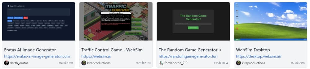 4. Websim AI 自動生成網頁、遊戲或應用程式。