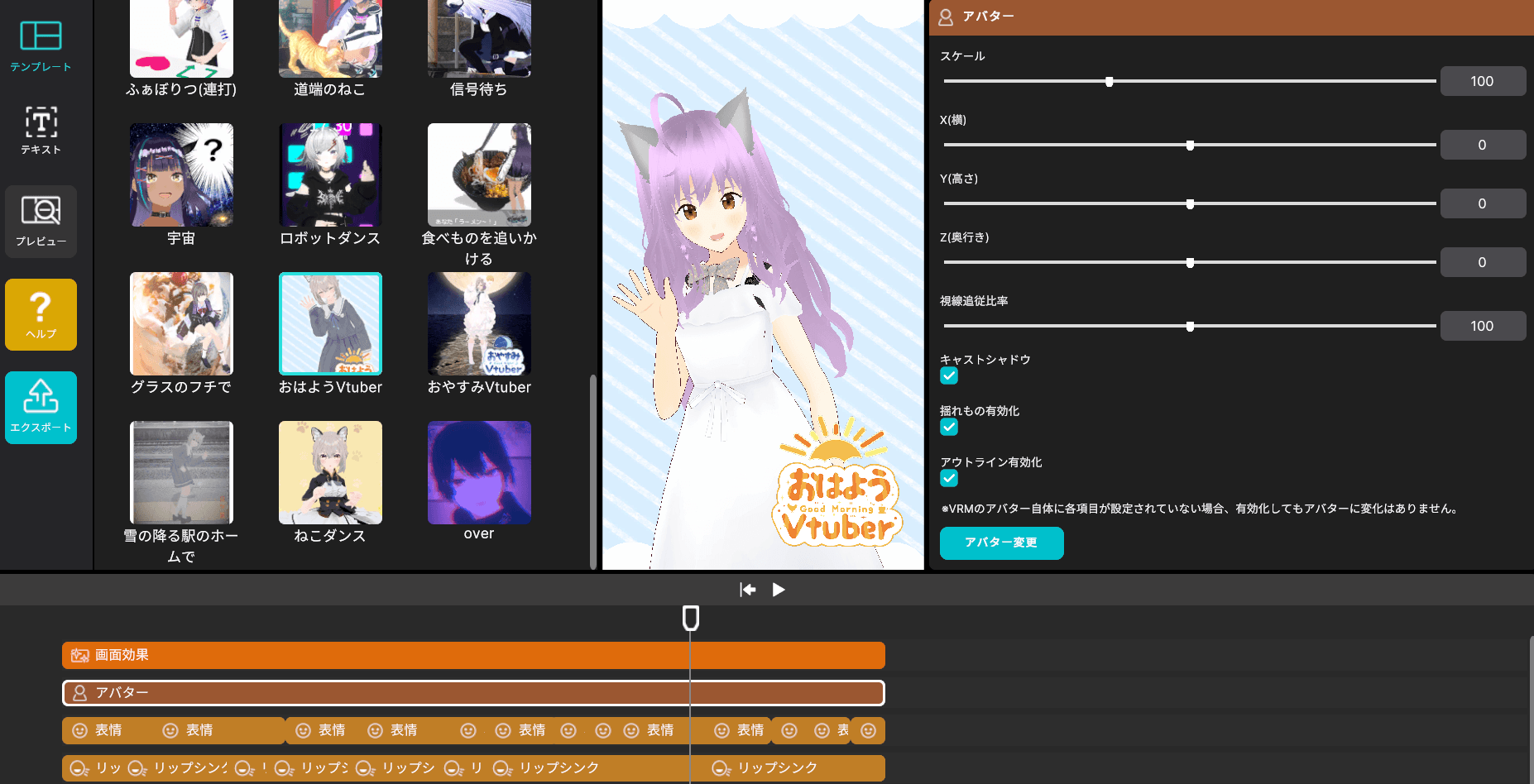 Vark Shorts 內置4個虛擬人物 VRM 檔案,用戶亦可上載自己製作的 VRM。此外,軟體提供多個模板 (Template),使用者只需從眾多樣板中選擇喜歡的模板,就能輕鬆製作短片。用戶亦可更改模板,如調整時間軸,更換背景、添加文字、增添聲音與特殊效果等。VARK SHORTS 輸出的格式為 MP4。